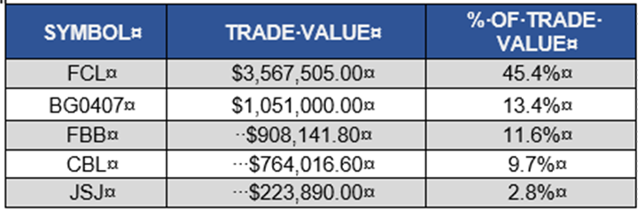 The top five share volume leaders on BISX for the three-month period January 2, 2020 to March 31, 2020 with their contribution to total traded volume displayed as a percentage were: