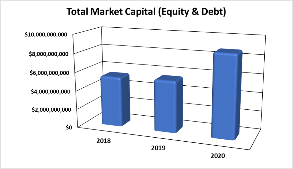 Over the 3-year period 2018 to 2020, the market value of all securities listed on BISX has shown an increase from 2018 to 2019. The increase from 2019 – 2020 was due to the listing of BRS on BISX in July 2020; as indicated by the chart below:
